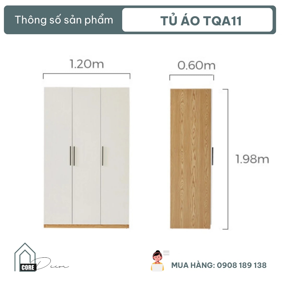 Tủ quần áo gỗ MDF đẹp tiện lợi TQA11 với phong cách đơn giản sẽ là điểm nhấn nổi bật cho lối ra vào căn hộ của bạn. Sản phẩm phù hợp với nhiều phong cách nội thất từ hiện đại cho tới cổ điển, vintage. Với nhiều sản phẩm có nhiều kệ và hộc ngăn kéo giúp sắp xếp gọn gàng. Sử dụng vật liệu ván ép công nghiệp MDF chống ẩm phủ Melamine cao cấp giúp sản phẩm có độ bền cao, chống trầy và chống