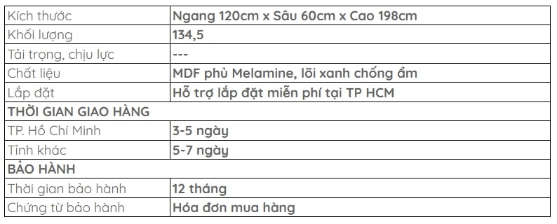 Sử dụng ván MDF chống ẩm phủ Melamine, sản phẩm mang lại sự bền bỉ, dễ dàng vệ sinh và chống lại tác động từ môi trường. Vật liệu này không chỉ giúp sản phẩm giữ được vẻ đẹp lâu dài mà còn đảm bảo sự an toàn và tiện ích trong suốt quá trình sử dụng.