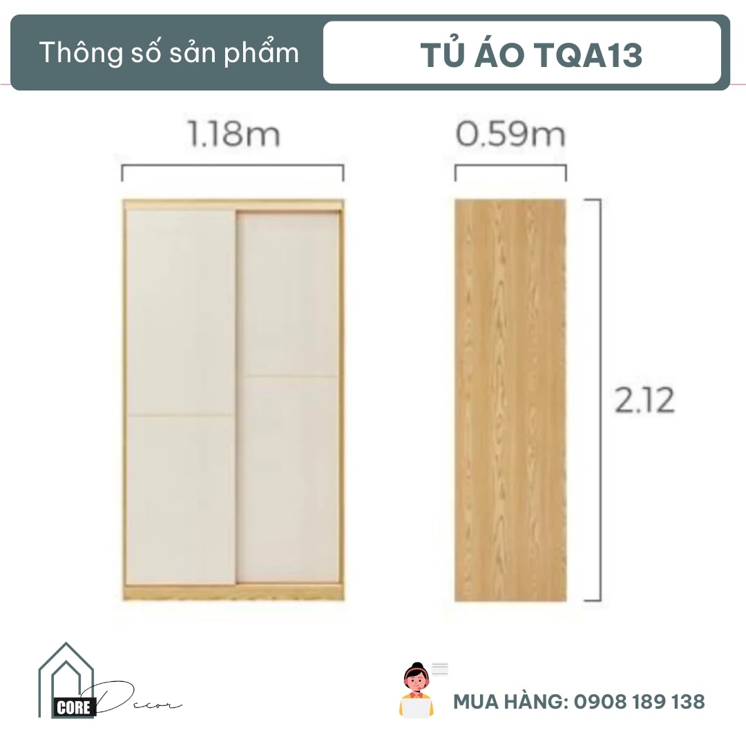 Tủ quần áo cánh trượt thiết kế thông minh tiện dụng TQA13
