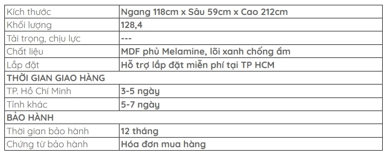 Sử dụng ván MDF chống ẩm phủ Melamine, sản phẩm mang lại sự bền bỉ, dễ dàng vệ sinh và chống lại tác động từ môi trường. Vật liệu này không chỉ giúp sản phẩm giữ được vẻ đẹp lâu dài mà còn đảm bảo sự an toàn và tiện ích trong suốt quá trình sử dụng.
