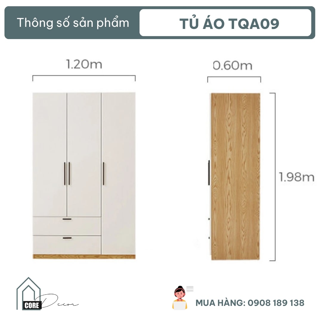Tủ gỗ đựng quần áo đẹp hiện đại TQA09