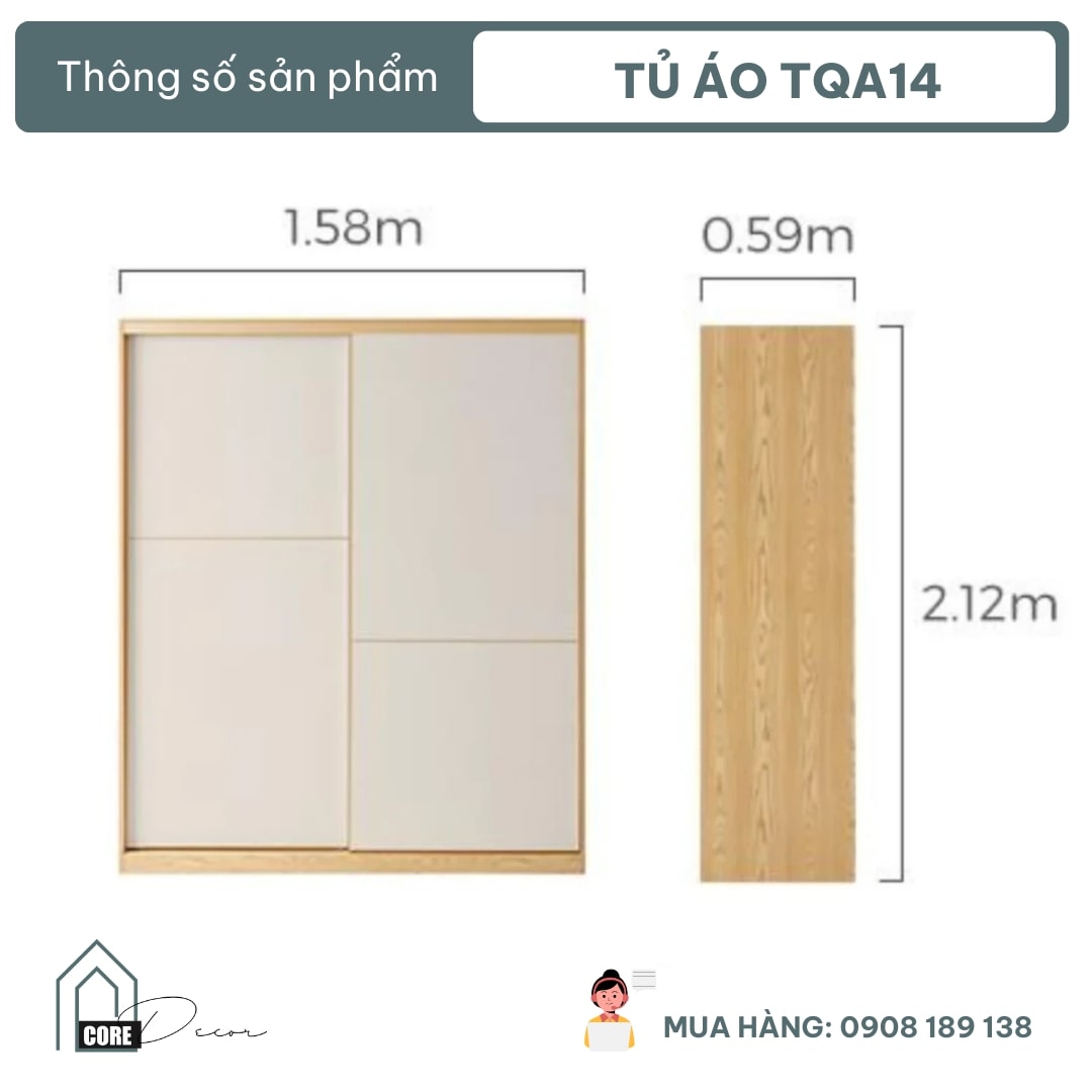 Tủ quần áo cửa lùa 2 cánh hiện đại TQA14