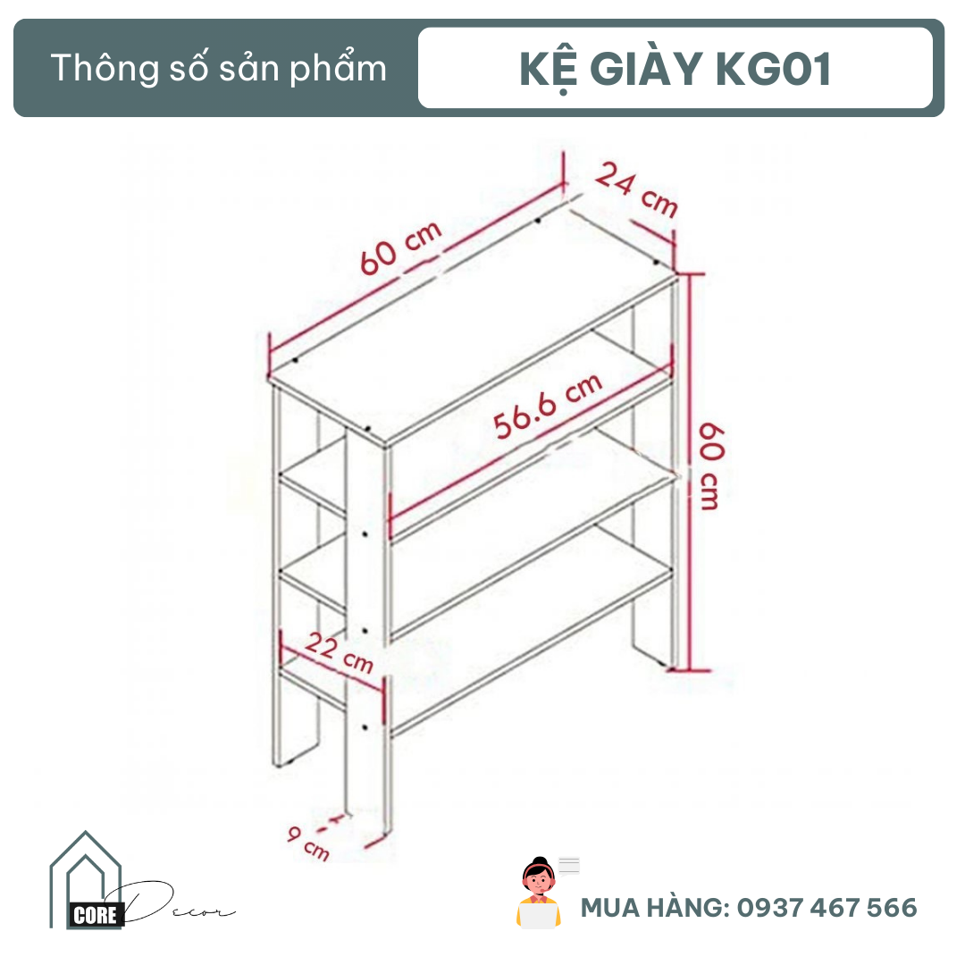 Kệ giày đẹp gỗ MDF thiết kế tiện dụng KG01
