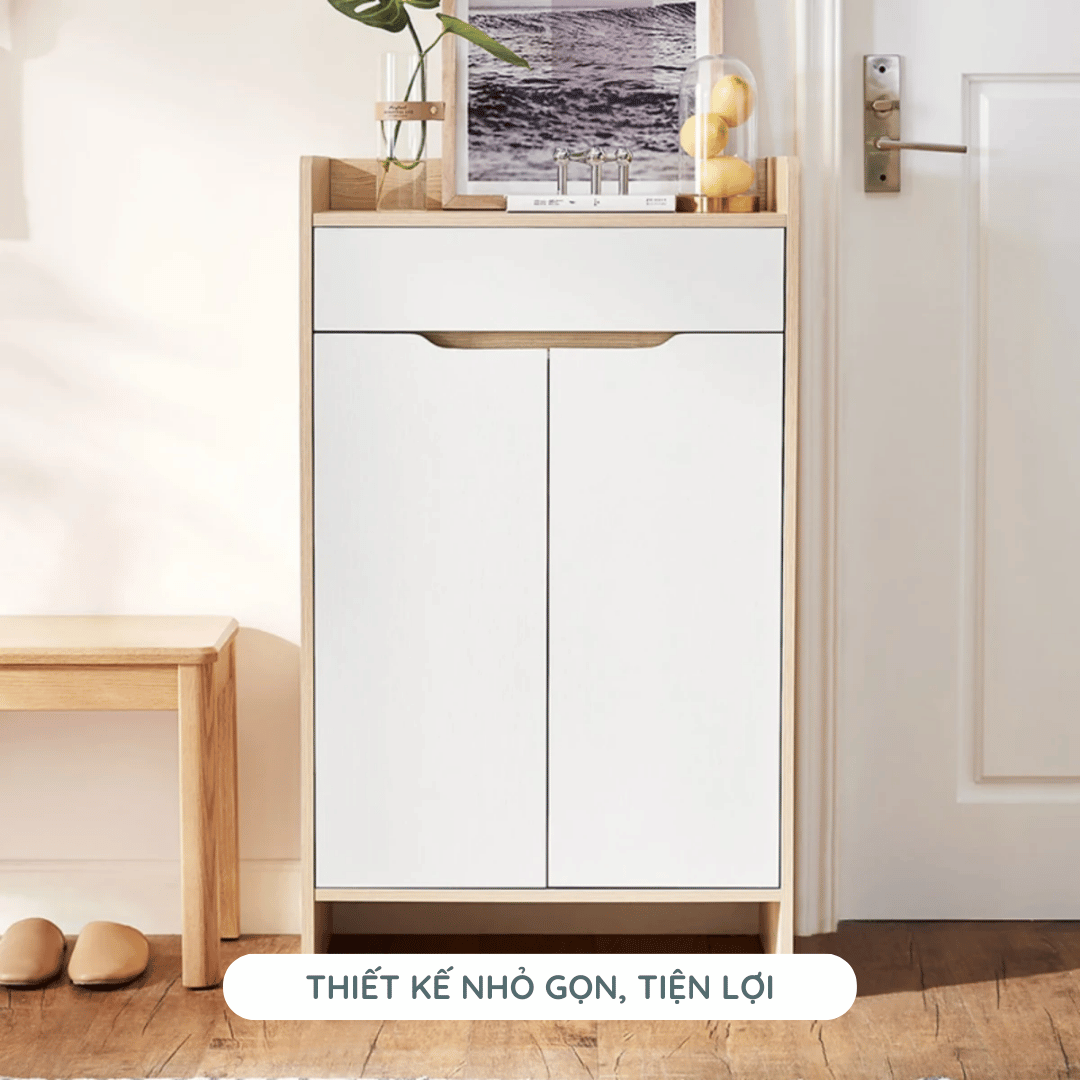 Kệ giày gỗ đa năng TG02 được thiết kế tinh tế nhằm đem đến cho bạn không gian sống hiện đại và tiện nghi. Sản phẩm bao gồm các đợt chắc chắn để phân chia các ngăn tủ khác nhau, tạo nhiều không gian lưu trữ hơn. Sản phẩm sử dụng vật liệu ván ép công nghiệp MDF chống ẩm phủ Melamine cao cấp giúp kệ giày SMLIFE có độ bền cao, chống trầy và chống ẩm rất tốt. Khám phá ngay chi tiết về ưu điểm nổi bật của sản phẩm dưới đây.