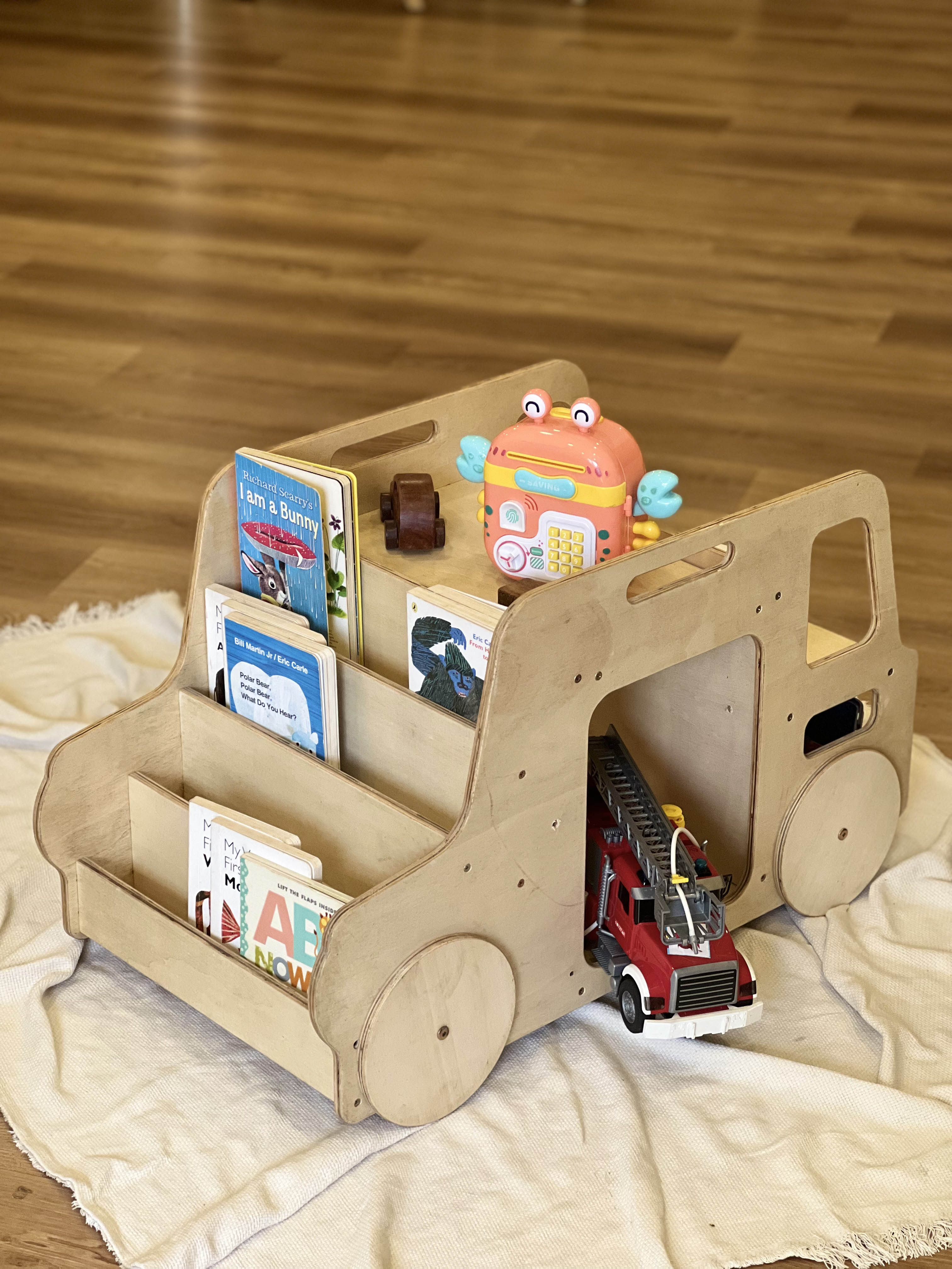 Kệ Sách Xe Bus là một dòng sản phẩm từ gỗ Plywood mang đến cho bé không gian học tập & vui chơi hoàn hảo.